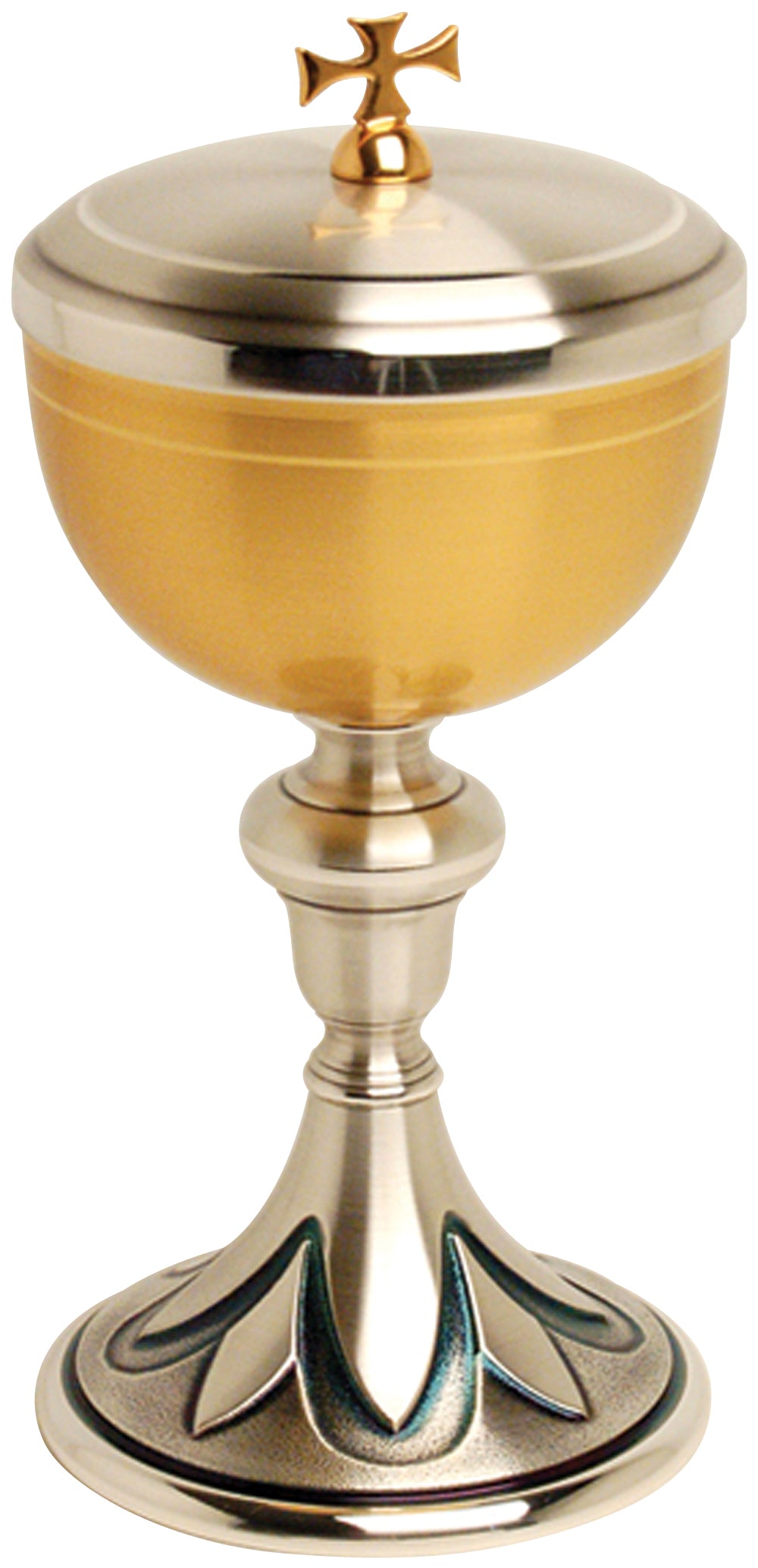 24k gold plated and oxidized silver. 4˝ base. 8-1⁄4˝H., 3-7⁄8˝ dia. cup, 200 host cap.