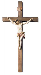 Walnut with Fontanini hand-painted corpus on a block cross.