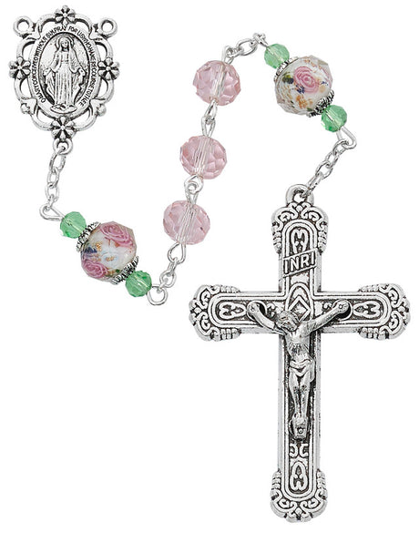 PINK & CERAMIC BEAD FLOWER ROSARY - R704DF