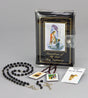 This set features Traditions Edition of the Marian Children's Mass Book with a Gold stamped, padded cover, clear vinyl wallet, with gift Rosary, laminated