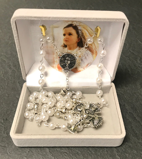 PEARL FIRST COMMUNION ROSARY WITH CHALICE OUR FATHER BEADS GIFT BOXED | Malhame