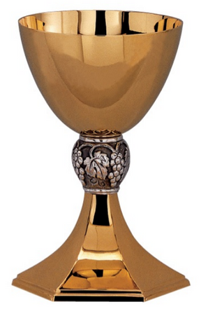 Chalice with hexagonal base. Node with grape motif.