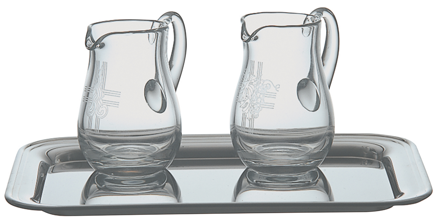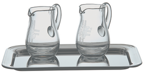 Engraved crystal cruets, 3 ½" height, 4 oz. cap.