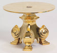 De tres patas. Acabado en dos tonos bañado en oro de 24k. Diseño de volutas en las piernas. 41⁄2˝ de altura, 6˝ de diámetro. la placa superior.