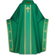 Chasuble sewn in Rafael, a fabric of 100% synthetic fibers. Elegant woven orphrey with cross motif. Width 59", length 53", inside stole included.