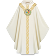 Slabbinck chasuble In Dupion, machine embroidered Jubilee design on the fabric.