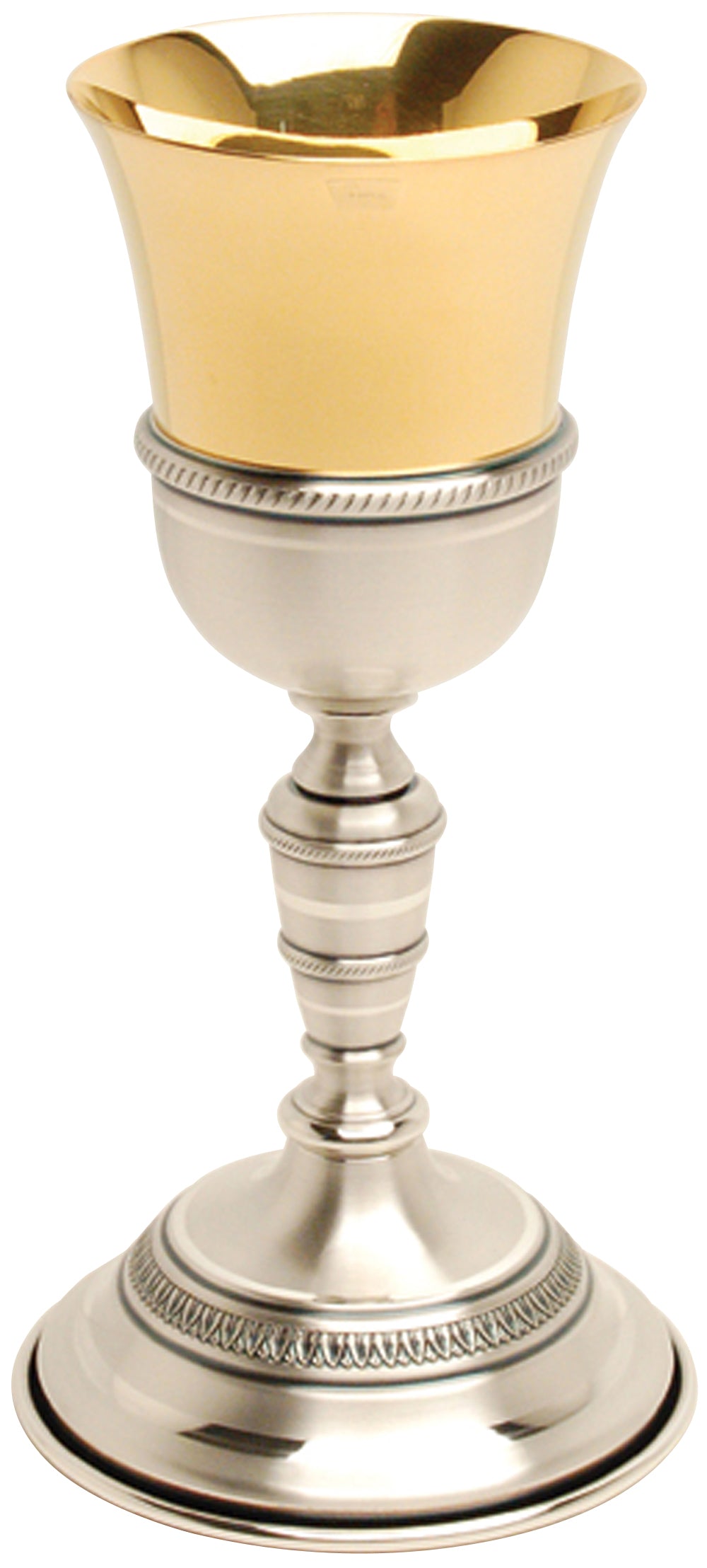 Chapado en oro y plata de 24k. 7-7⁄8˝ de altura, 3˝ de diámetro. taza, base de 4˝. 4 onzas. gorra.