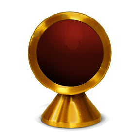 Red velvet background for relic display. Back opening. All gold lacquered satin finish. Height 3", chamber dia. 2".