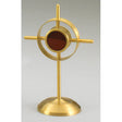 Red velvet background for relic display. Back opening. All gold lacquered satin finiah. Base dia. 4 1/2", height 9", chamber dia. 2".