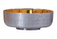 4" height, 10" dia., hammered and silver oxidized outside, 24k gold plated inside, footed base.