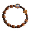 9MM Beaded brown wood Carlo Acutis rosary bracelet. Youth size. Stretches to fit a variety of wrists. Comes on a hang card. Made in Italy.