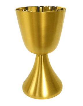 16 oz., 7" height, 4" dia. Satin gold, bright polished inside.
